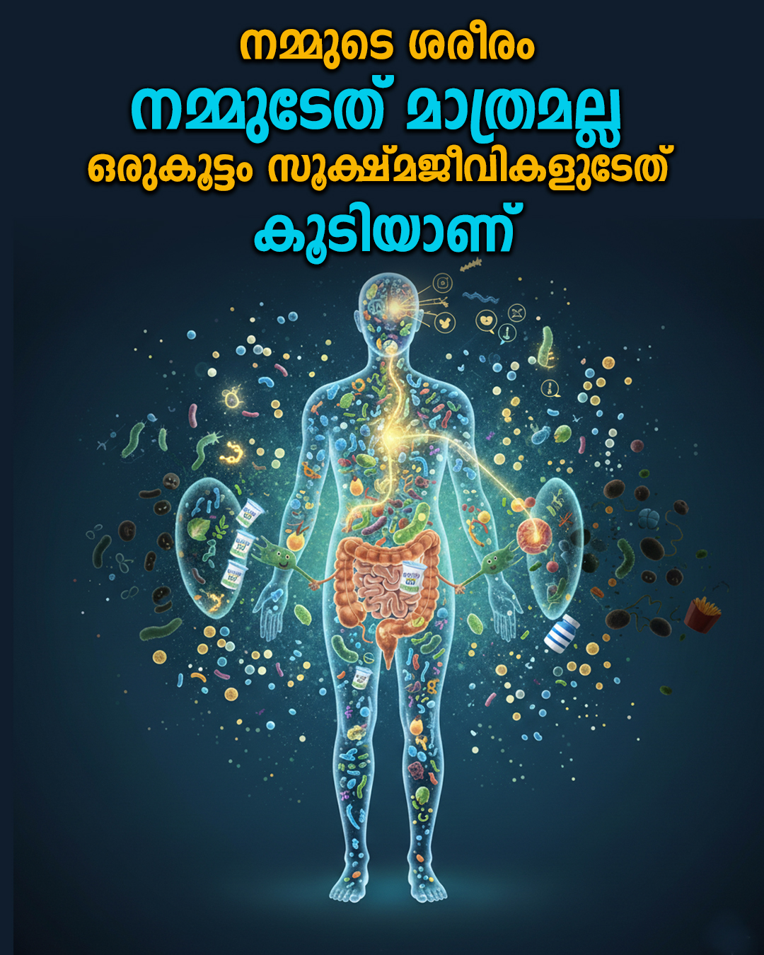 മനുഷ്യശരീരത്തെ നാം പലപ്പോഴും “എന്റെ ശരീരം” എന്ന് കരുതുമ്പോഴും, ശാസ്ത്രപരമായി നോക്കുമ്പോൾ അത് മനുഷ്യകോശങ്ങളുടെ മാത്രം സമാഹാരം അല്ല. നമ്മുടെ ശരീരത്തിൽ മനുഷ്യകോശങ്ങളോടൊപ്പം ജീവിക്കുന്ന അനവധി സൂക്ഷ്മജീവികളുടെ ഒരു വമ്പൻ ലോകം കൂടി ഉണ്ട്. ഇവയെ ഒറ്റക്കെട്ടായി “മൈക്രോബയോം” എന്ന് വിളിക്കുന്നു.…