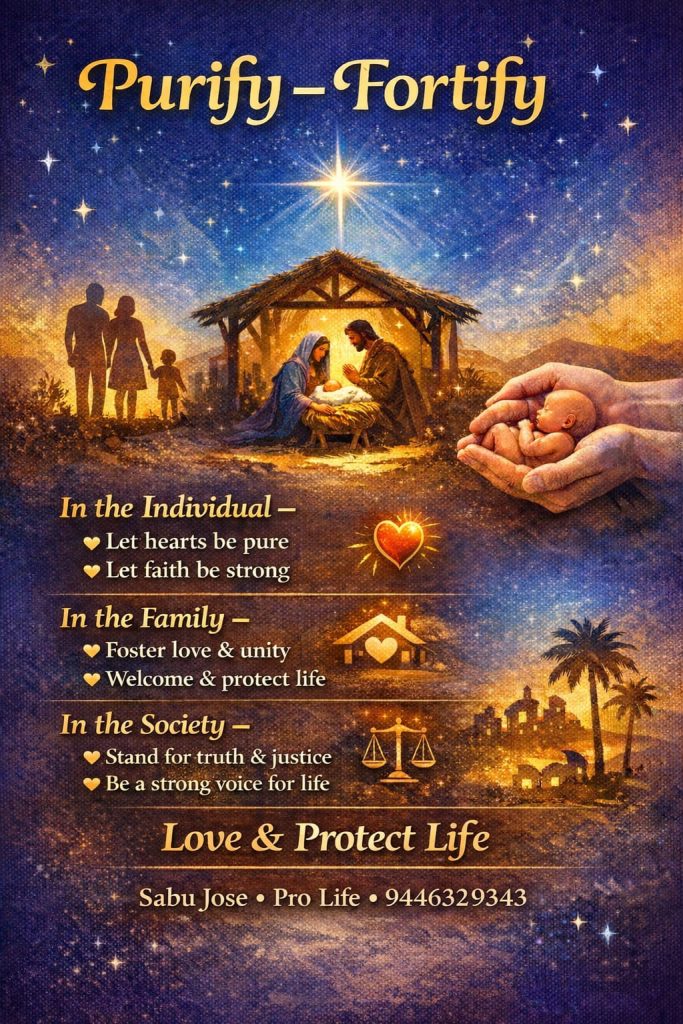 ഉണ്ണീശോയുടെ ഹൃദയം സ്വന്തമാക്കിയ, ഹൃദയം കീഴടക്കിയ ബേത്ലഹമിലെ ആട്ടിടയന്മാരെപ്പോലെ തിരുപ്പിറവിയുടെ പുണ്യ ഭിനങ്ങളിൽ എളിമയും വിശ്വാസവും ആനന്ദവും നമ്മുടെ ജീവിതത്തിൽ വിരിയട്ടെ, അതു മറ്റുള്ളവരുടെ ജീവിതത്തിലും നമുക്കാശംസിക്കാം
