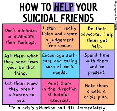 എന്റെ ചുറ്റുമുള്ളവരുടെ സങ്കടങ്ങൾ തിരിച്ചറിയുവാനും അവരെ ആർദ്രതയോടെ കേൾക്കുവാനും വൈകാരിക പിന്തുണ നൽകുവാനും ഞാൻ ശ്രദ്ധിക്കും. ആത്മഹത്യാ ചിന്തകളെ അകറ്റി