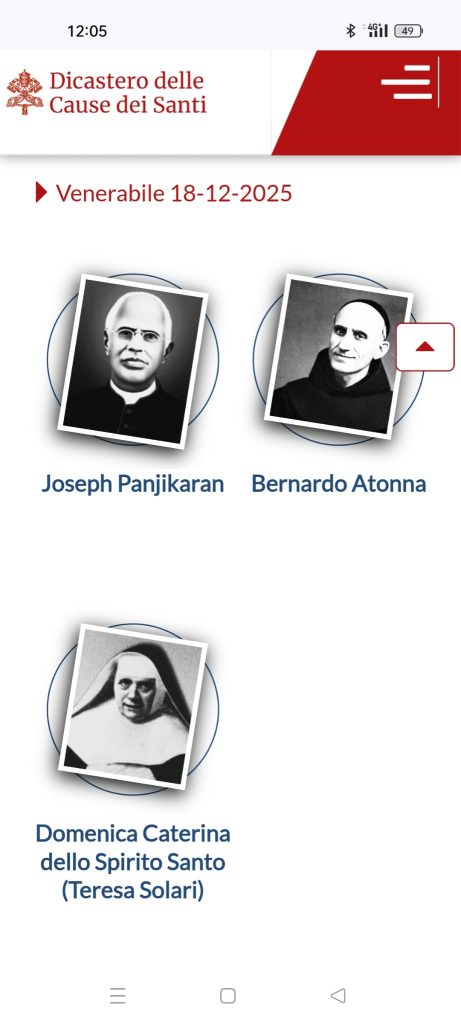 ഇറ്റലിയിൽ നേപ്പിൾസ് നിന്നുള്ള ഫ്രാൻസിസ്കൻ സന്യാസ വൈദികൻ ബെരാർദോ അത്തൊണ്ണയെയും, ഇറ്റലിയിൽനിന്നുതന്നെ ജെനോവയിൽനിന്ന് ഡൊമെനിക്കൻ സന്യാസിനീസമൂഹത്തിന്റെ സ്ഥാപക ഡൊമെനിക്ക കാതറീനയെയും പഞ്ഞിക്കാരനച്ചനോടൊപ്പം ഇന്ന് സഭ ധന്യരായി ഉയർത്തി.