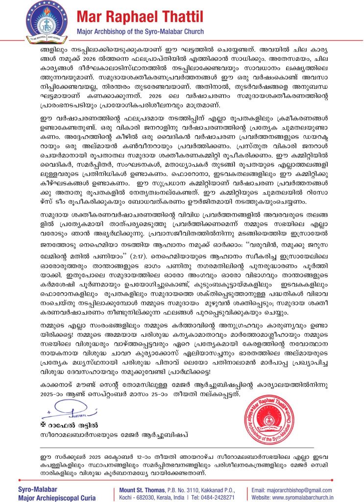 Post navigation ദൈവാലയ പരിശുദ്ധിക്ക് അനുയോജ്യമായ മാന്യമായ വസ്ത്രങ്ങൾ ധരിച്ചാണ് ഫോട്ടോഗ്രാഫേഴ്സ്/ വീഡിയോഗ്രാഫേഴ്സ് ദൈവാലയത്തിൽ പ്രവേശിക്കേണ്ടത്. മാർ ജോസഫ് സെബസ്ത്യാനി – നസ്രാണി കത്തോലിക്കരുടെ വിസ്മരിക്കപ്പെട്ട നായകൻ