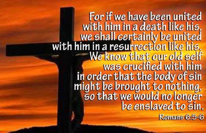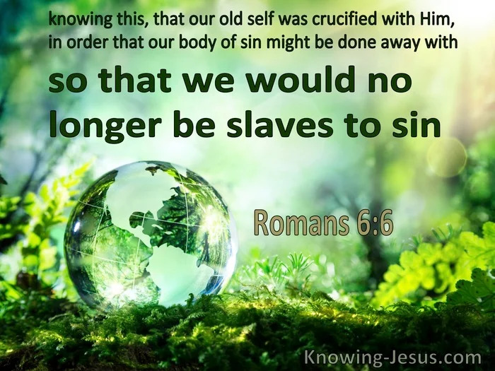 We know that our old self was crucified with him in order that the body of sin might be brought to nothing, so that we would no longer be enslaved to sin. (Romans 6:6)