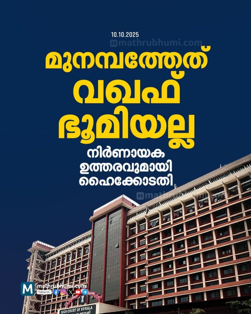 ഇന്ന് മുനമ്പത്തിൻ്റെ സത്യം പച്ചയായി വെളിപ്പെട്ട ദിനമാണ്. ജസ്റ്റിസ് സുഷ്രുത് അർവിന്ദ് ധർമാധികാരിയും ജസ്റ്റിസ് ശ്യാംകുമാറും അടങ്ങിയ ഹൈക്കോടതി ഡിവിഷൻ ബെഞ്ചിൻ്റെ അന്തിമവിധിയിലുള്ള നിരീക്ഷണങ്ങൾ നീതിബോധമുള്ള ആർക്കും ആനന്ദം നല്കുന്നതാണ്. മുനമ്പം വിഷയത്തിൽ കേരള സർക്കാർ രാമചന്ദ്രൻ നായർ കമ്മീഷനെ നിയമിച്ചതിനെതിരേ കേരള വഖഫ് സംരക്ഷണ വേദി നല്കിയ കേസിൽ 17.03.2025ൽ ഹൈക്കോടതി ഏകാംഗ ബഞ്ച് പുറപ്പെടുവിച്ച വിധിക്കെതിരേ സർക്കാർ കൊടുത്ത അപ്പീലിലാണ് ഡിവിഷൻ ബെഞ്ച് വിധി പുറപ്പെടുവിച്ചിട്ടുള്ളത്.