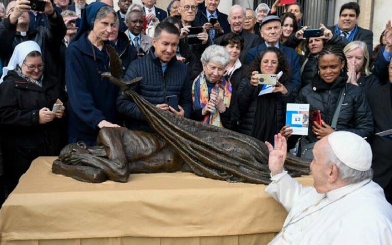 വത്തിക്കാന് സിറ്റി: നവംബർ 13 ഞായറാഴ്ച പാവപ്പെട്ടവരുടെ ആഗോളദിനം നടക്കാനിരിക്കെ കലാകാരൻ സൃഷ്ടിച്ച ഷെൽട്ടറിംഗ് എന്ന ശിൽപ്പം അനാശ്ചാദനം ചെയ്ത് ഫ്രാന്സിസ് പാപ്പ. തിമോത്തി ഷ്മാൽസ് എന്ന കലാകാരൻ സൃഷ്ടിച്ച ശിൽപ്പം ബുധനാഴ്ച വത്തിക്കാനിൽ നടത്തിയ പൊതുകൂടിക്കാഴ്ചാസമ്മേളനത്തിന് ശേഷമാണ് പാപ്പ അനാശ്ചാദനം ചെയ്തത്. ശിൽപ്പം ഭവനരഹിതരുടെ ശോചനീയാവസ്ഥ വ്യക്തമാക്കുന്നതാണെന്ന് പാപ്പ പറഞ്ഞു. ഭവനരഹിതനായ ഒരാളുടെ രൂപത്തെ ഒരു പ്രാവ് പുതപ്പുമായി പറന്നുയർന്ന് പുതപ്പിക്കുന്നതാണ് വെങ്കലശിൽപ്പം. സുവിശേഷവത്കരണത്തിനായുള്ള റോമൻ ഡിക്കാസ്റ്ററിയുടെ പ്രീഫെക്ട് ആർച്ച് ബിഷപ്പ് റീനോ ഫിസിക്കെല്ലയുടെ സാന്നിധ്യത്തിലായിരുന്നു … Continue reading നവംബർ 13 ഞായറാഴ്ച പാവപ്പെട്ടവരുടെ ആഗോളദിനം|വത്തിക്കാനിൽ ഷെൽട്ടറിംഗ് ശിൽപ്പം അനാശ്ചാദനം ചെയ്ത് പാപ്പ| വത്തിക്കാനില് പ്രത്യേക പരിപാടികള്